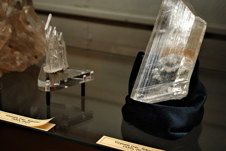 Moving on to the Miles Mineral Museum, we have these neat-looking gemstones. What really stood out to me was the thing that's holding the blue one there. Forgive me for my informal terminology. I don't know what most of these are called, whether it be the instruments or the stones. Regardless, it won't stop me from appreciating how cool it looks.