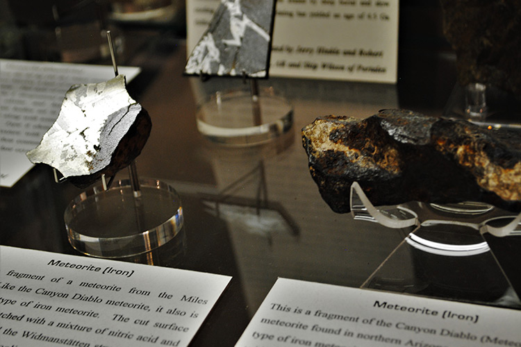 Alright. Here's the thing. I LOVE space. If I could explore the cosmos but there was a 150 percent chance of dying in some horrible space-related death, I'd take it in a heartbeat. How cool would that be, right? With that lead-in, these are iron meteorites shards. These were a part of a 5,400-plus pound meteorite that fell in Arizona 50,000 years ago. I've even been to the site, and I didn't realize it until I wrote the article! That's right, this is from Meteor Crater in Arizona—a meteor impact crater that's almost a full mile long. The compounds from the meteorite shards helped confirm that the same basic elements you can find in Earth can also be found in space, which is another awesome subject entirely. Not to mention, THESE ROCKS USED TO BE IN SPACE! That's so cool. I wish I could be that successful.
